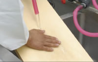 生成された電解水は、特殊な薬品などを加える必要もなく、そのまま使用できます。幅広く、様々な器具と組み合わせて日常的な清掃作業に対応。 「普段使い」できる。この使い勝手のよさが特長です。