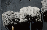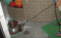 バケツ等に貯めたアルカリ性電解水と酸性電解水でモップをゆすり洗い。除菌と消臭が行えます。