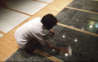 岩盤の表面の菌を拭き取り、除菌と消臭を同時に行います。